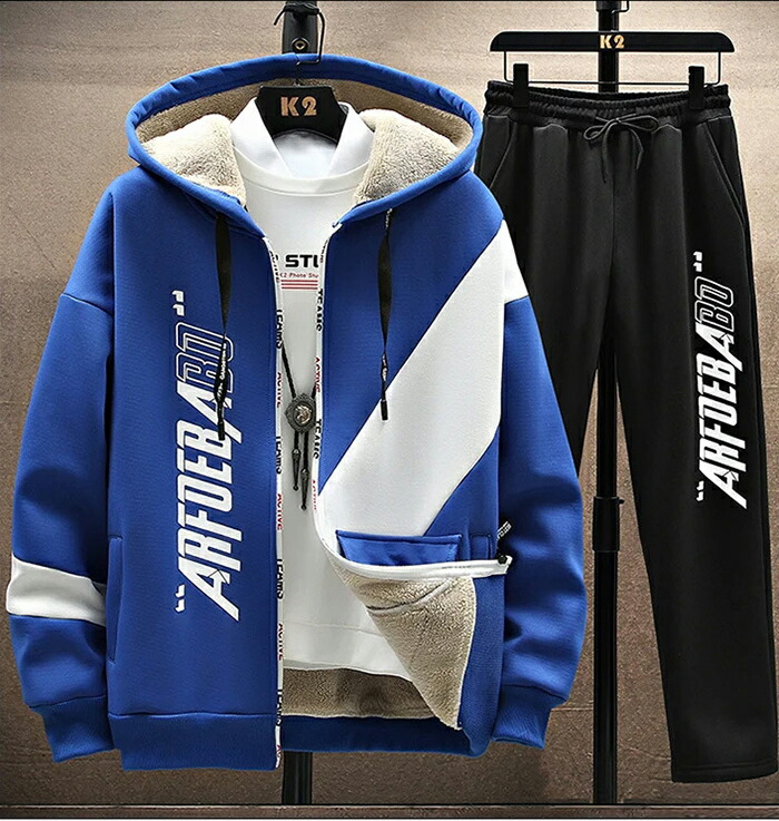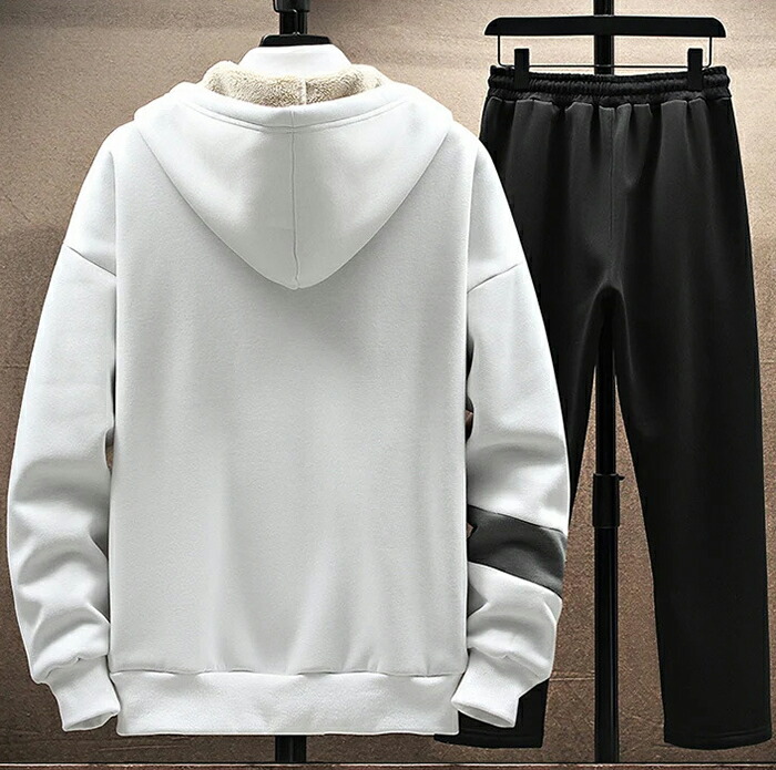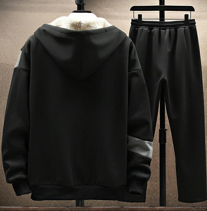 商品名:裏起毛 ジャージ スウェット メンズ 上下セット パーカー ロングパンツ ジョガーパンツ セットアップ フード付き ルームウェア 厚手 裏ボア もこもこ 2点セット 暖かい アウトドア 防寒対策 防寒 運動着 部屋着 釣り 秋 冬 無地 大きいサイズ