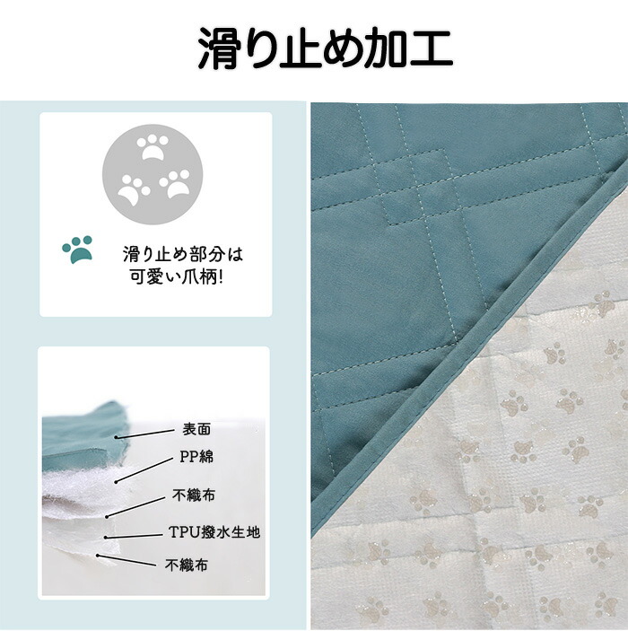防水加工で濡れてもサッと拭き取れば元通り!水を吸収するのでソファーが濡れる心配もありません。