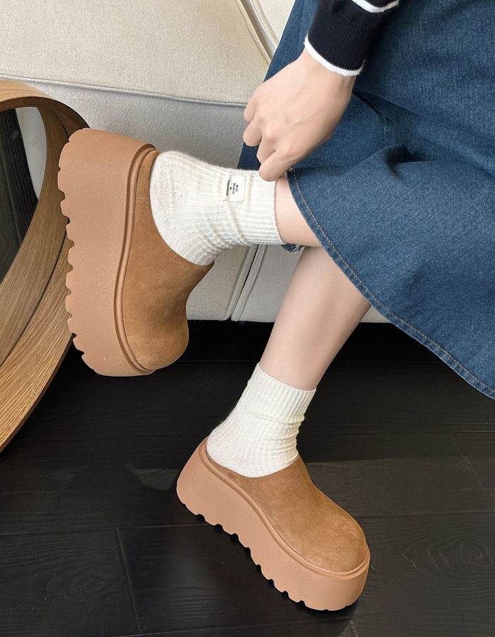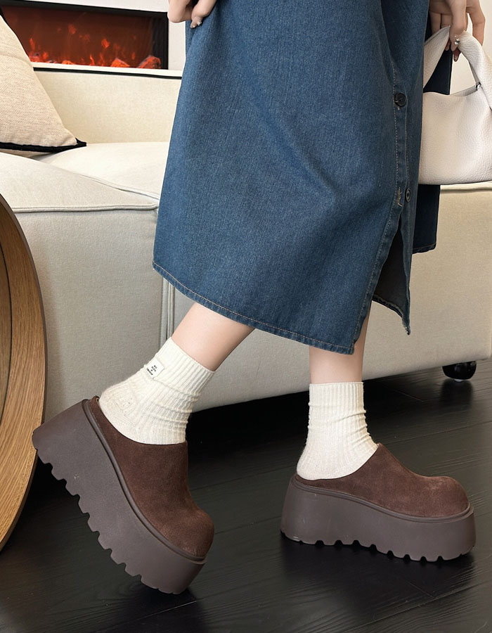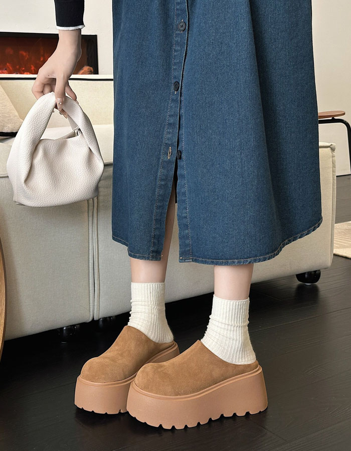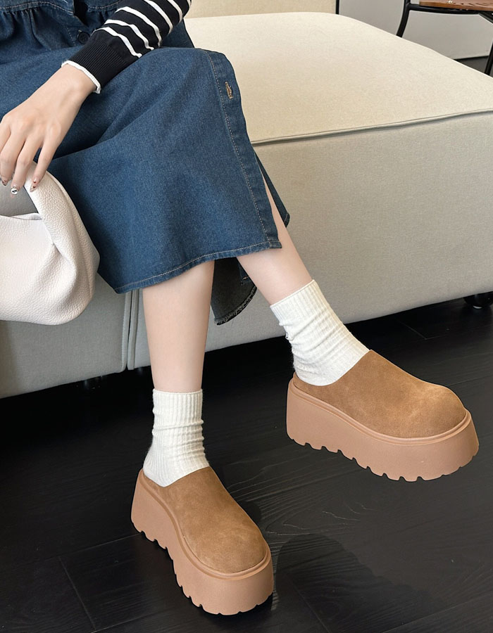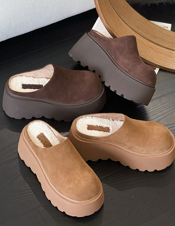 ムートンシューズ サボサンダル レディース 厚底スリッポン ムートン風サンダル裏ボア クロッグサンダル 6.5cmヒール スエード かかとなし 美脚 カジュアル 女性 大人 高級感 可愛い