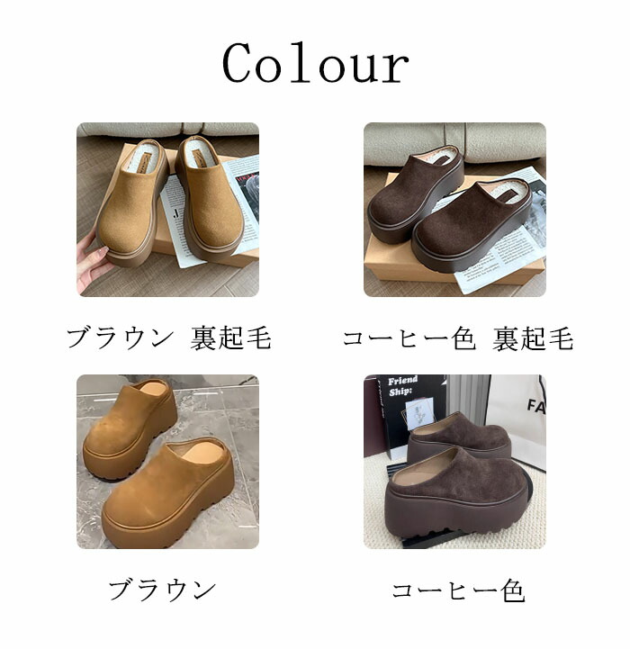 商品名:ムートンシューズ サボサンダル レディース 厚底スリッポン ムートン風サンダル 裏ボア クロッグサンダル 6.5cmヒール スエード かかとなし 美脚 身長アップ 保温 歩きやすい 外履き 靴 滑り止め おしゃれ 履きやすい 痛くない 柔らかい 秋冬 ブラウン コーヒー色 カジュアル 女性 大人 高級感 可愛い ファッション