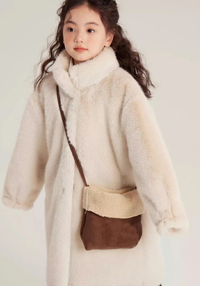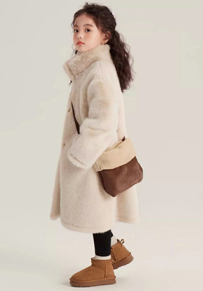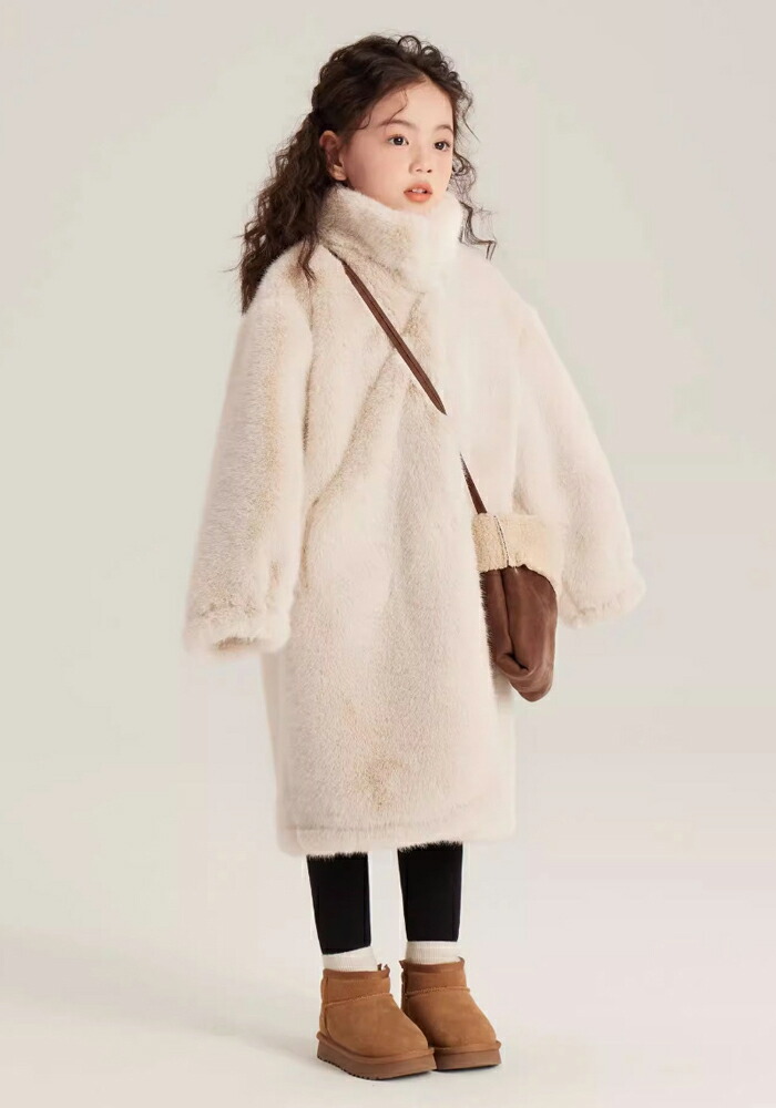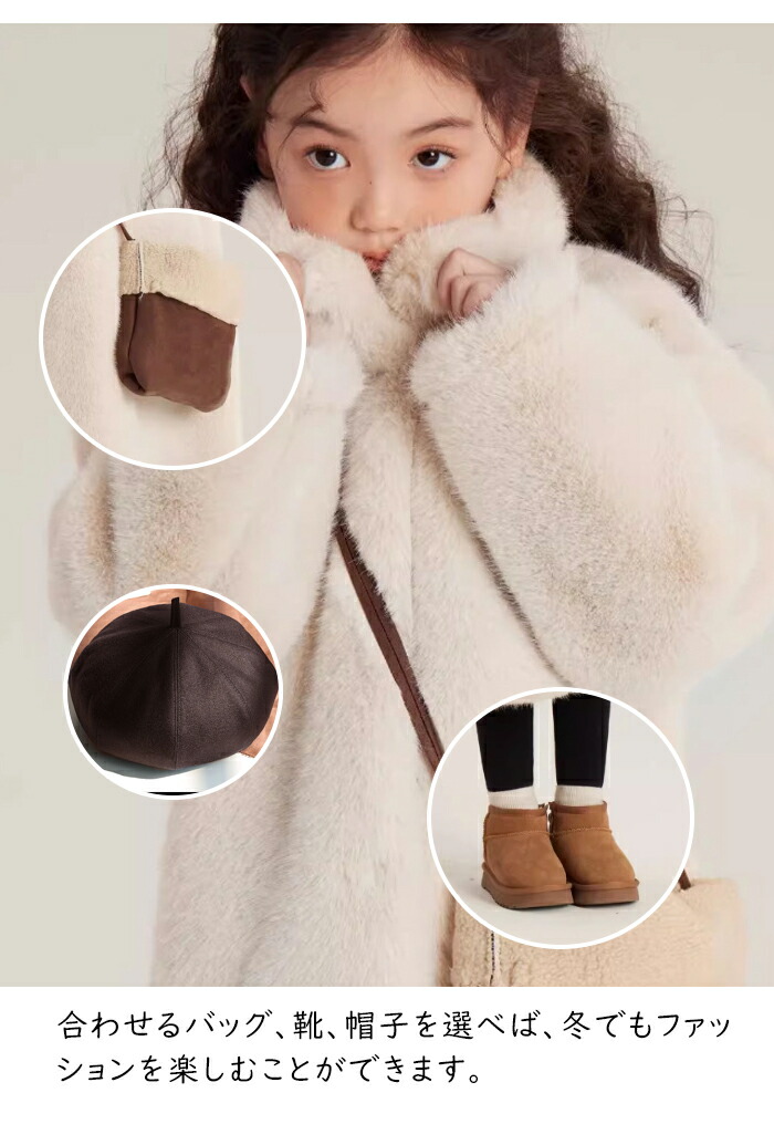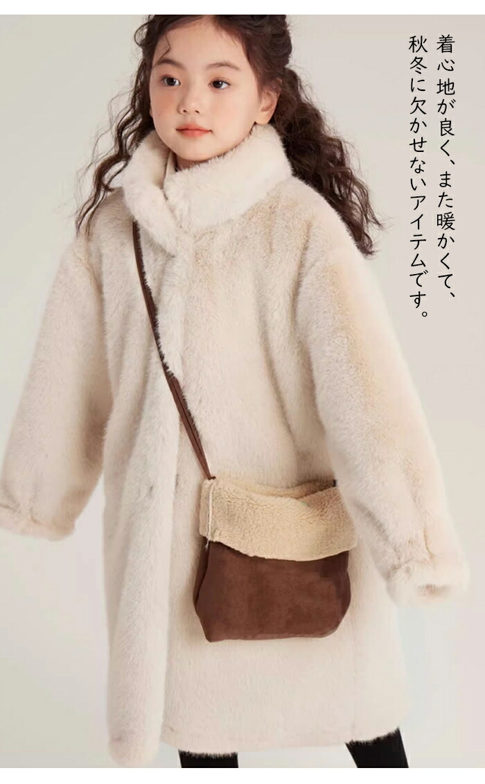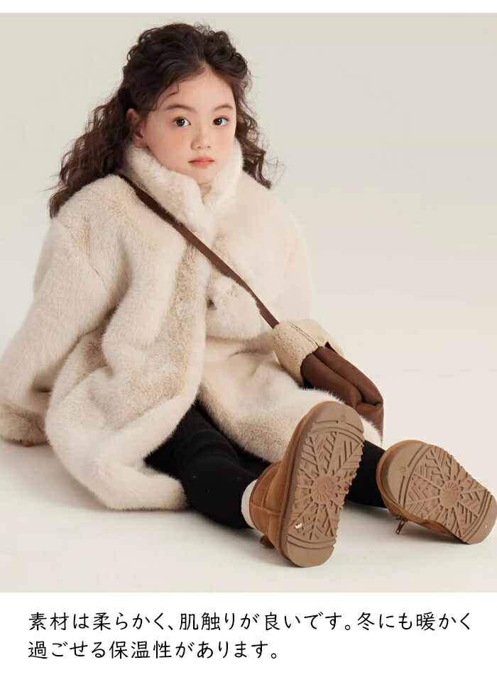 商品名:ファーコート ファージャケット フェイクファー 毛皮コート 子供服 オーバーコート もこもこ 立ち襟 キッズ 女の子 ガールズ 冬服 冬着 防寒 保温 厚手 長袖 アウター 暖かい かわいい 柔らかい 可愛い ゆったり カジュアル ふわふわ ベージュ 快適 室内室外兼用 通園 通学 韓国風 普段着 お出かけ
