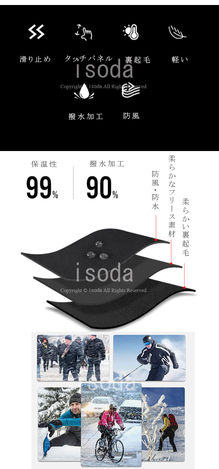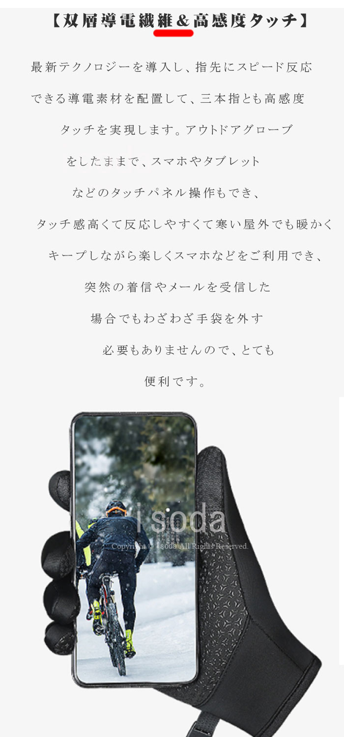 スキーグローブ 防水 3層構造 スマホ