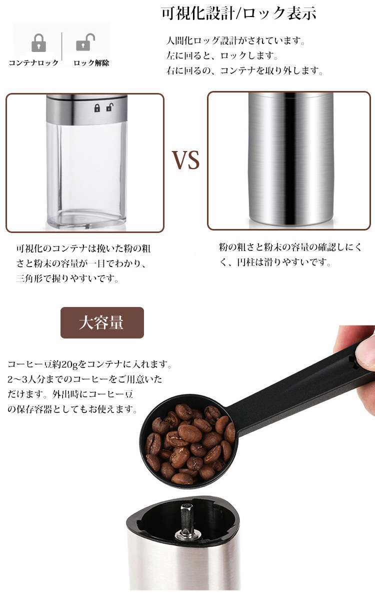 容量20g 2-3人分挽きできる挽きコ