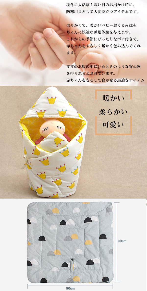 可愛いデザインのお洒落ベビーおくるみ