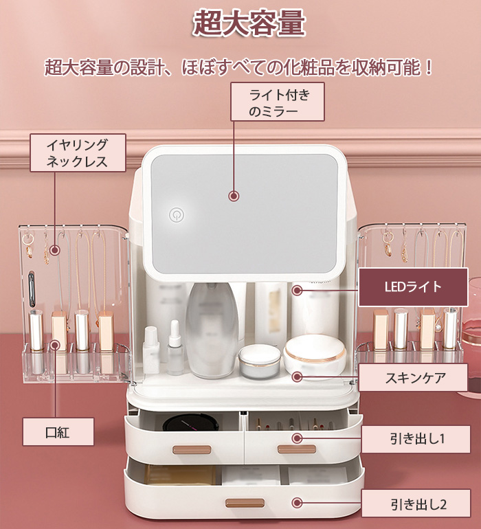 コスメ収納ボックス 大容量 ledライ