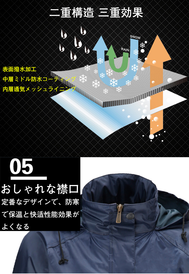 高い撥水 防水 透湿力を備えたレインコ