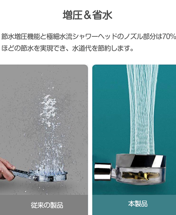 シャワーヘッド 節水 水圧アップ 手元