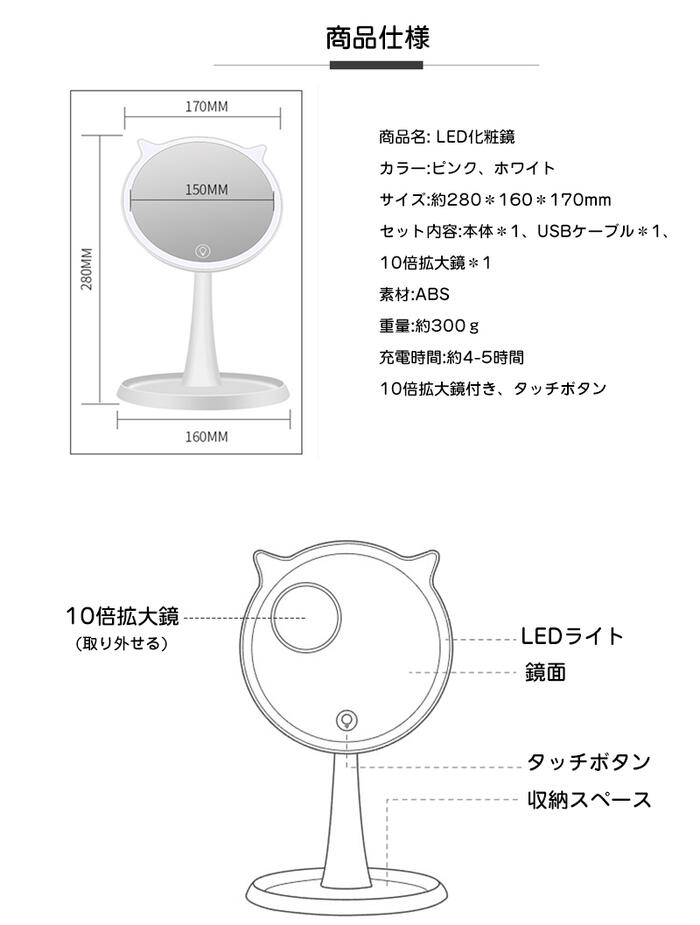 とてもかわいいデザインのLE化粧鏡 タ