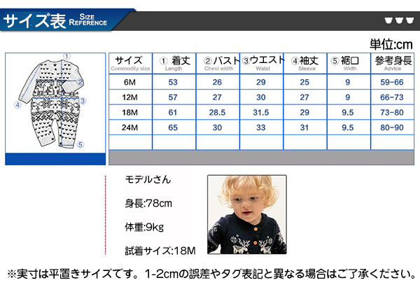 サイズ: 73cm/6M 80cm/12M 90cm/18M 100cm/24M