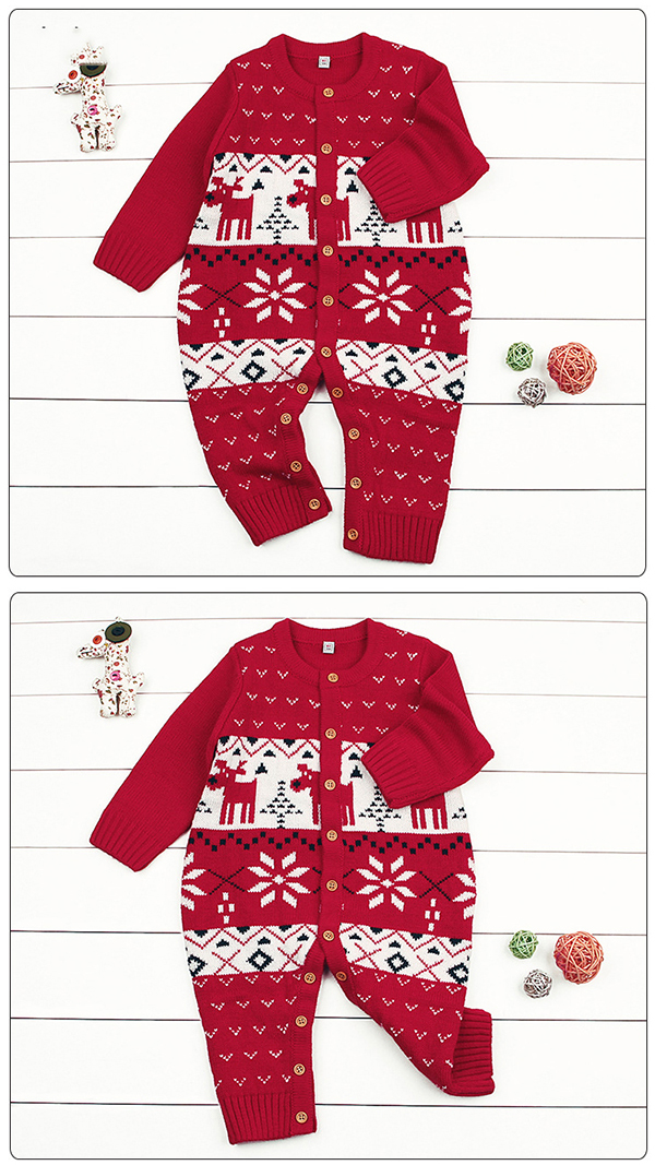 ベビー ロンパース 新生児 ニット 赤