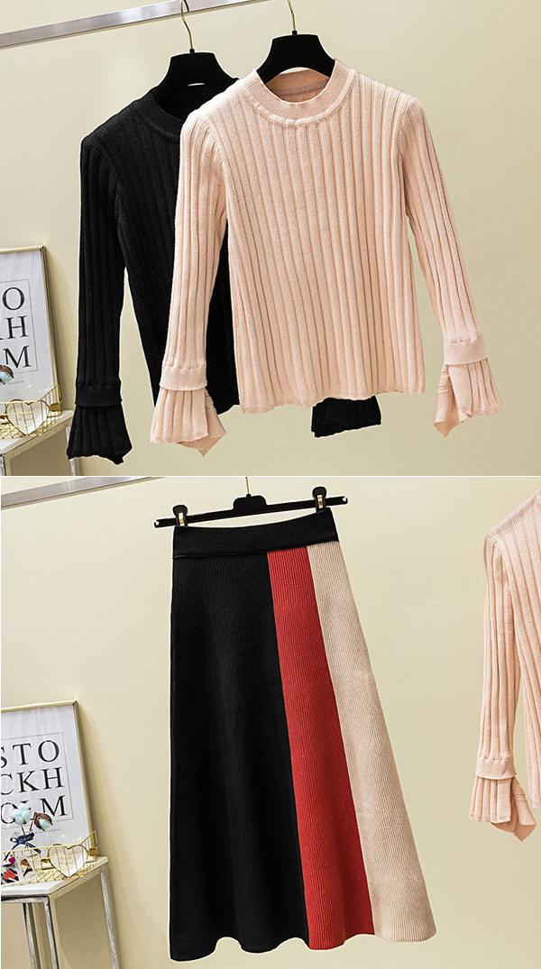 カラー/セット: ベージュトップス/スカート ブラックトップス/スカート