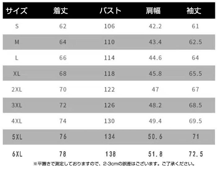 サイズ: S M L XL 2XL 3XL 4XL 5XL
