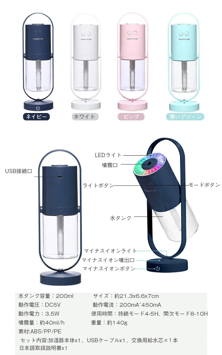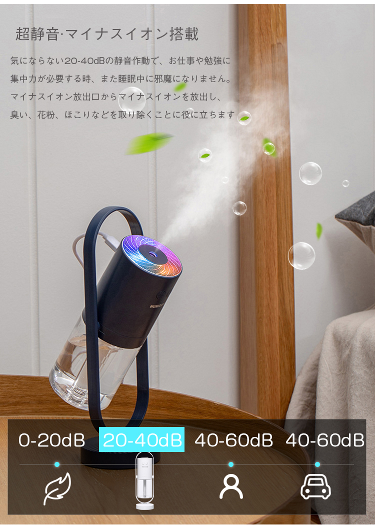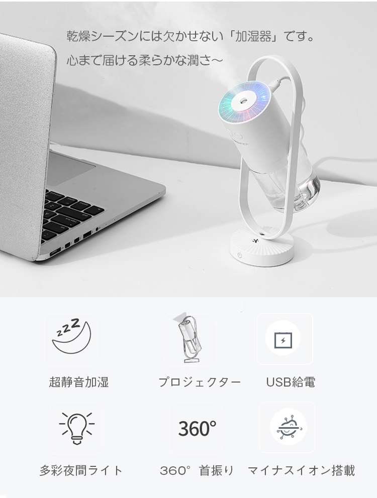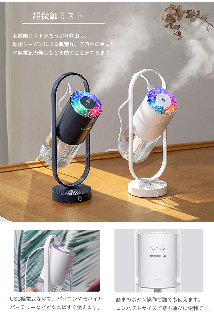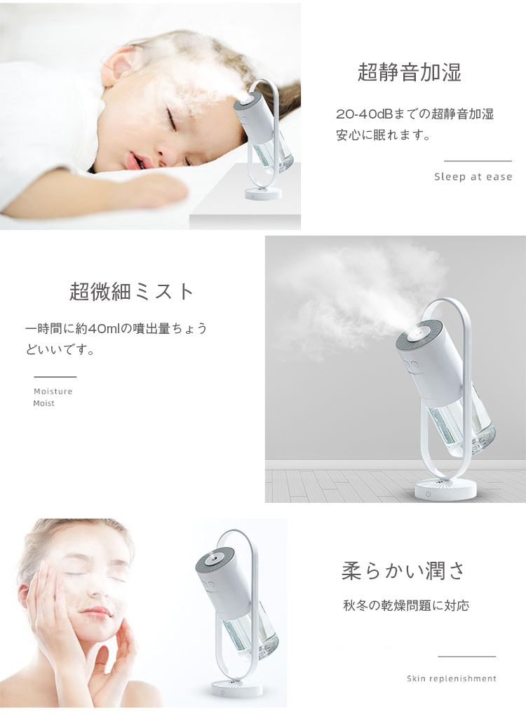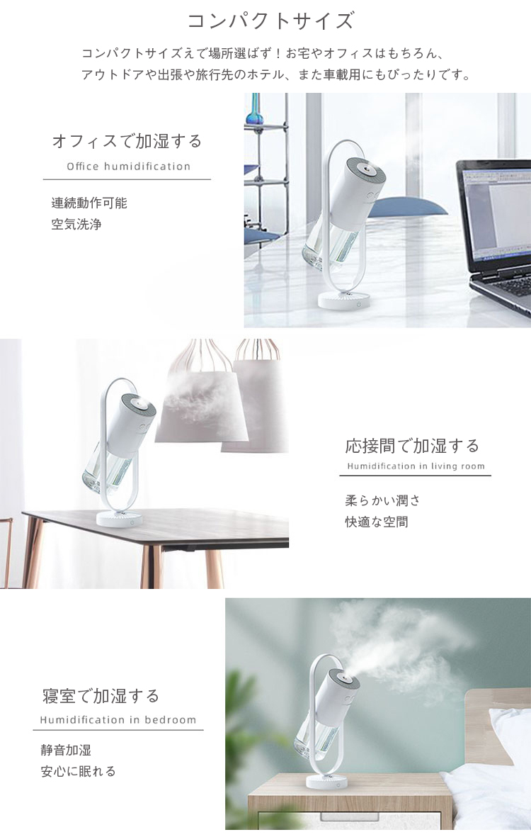 加湿器 卓上 ミニ加湿器 360°首振