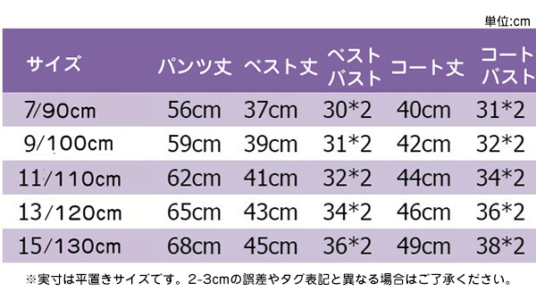 サイズ: 7/90cm 9/100cm 11/110cm 13/120cm 15/130cm