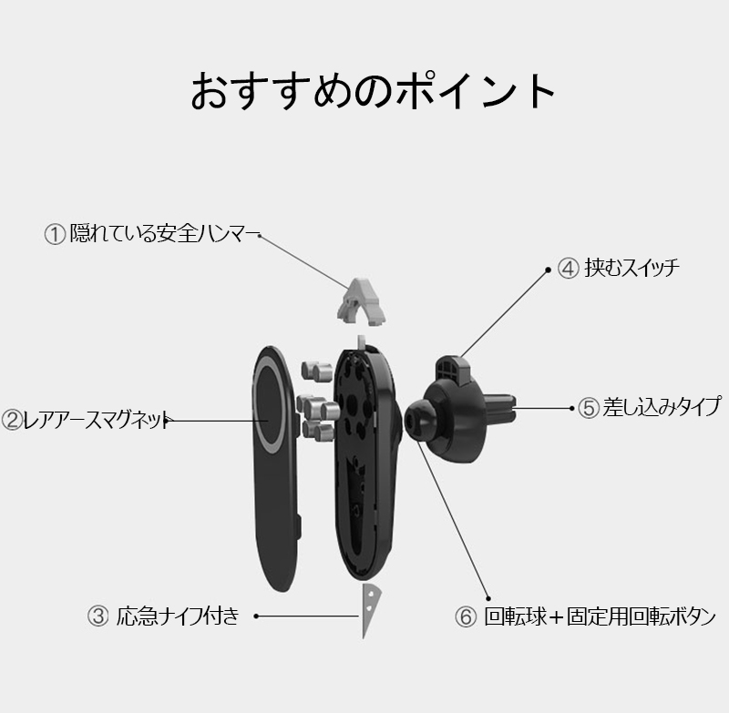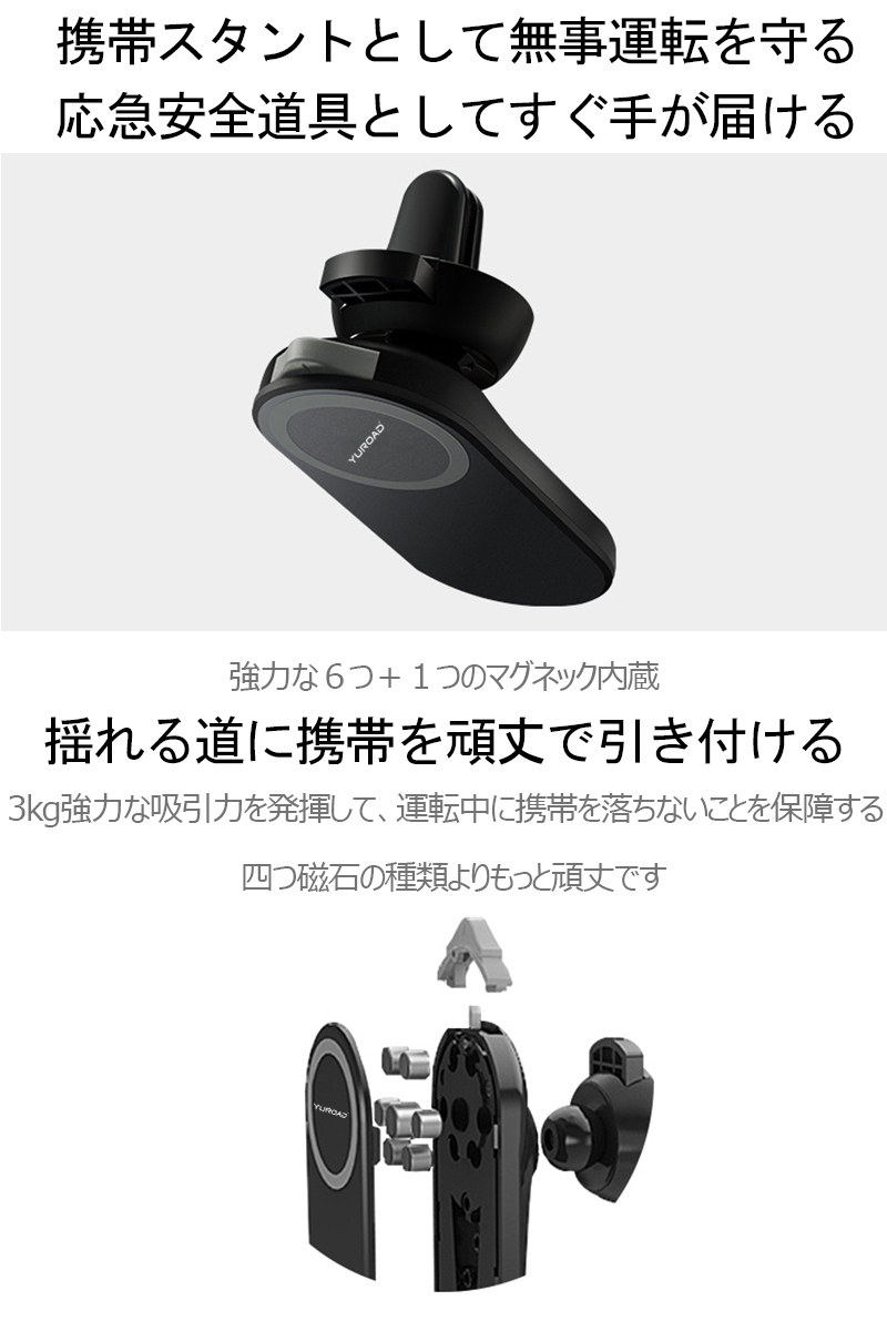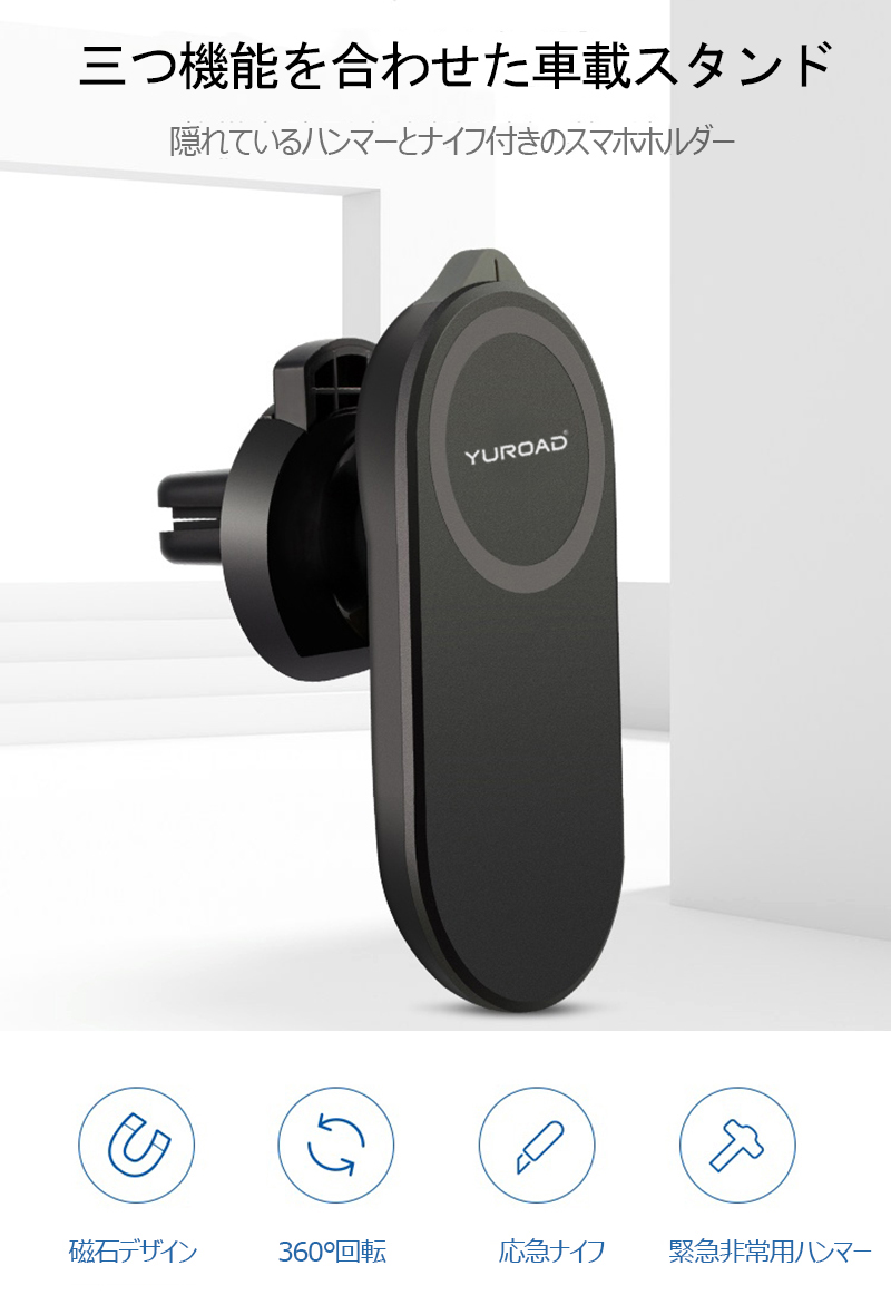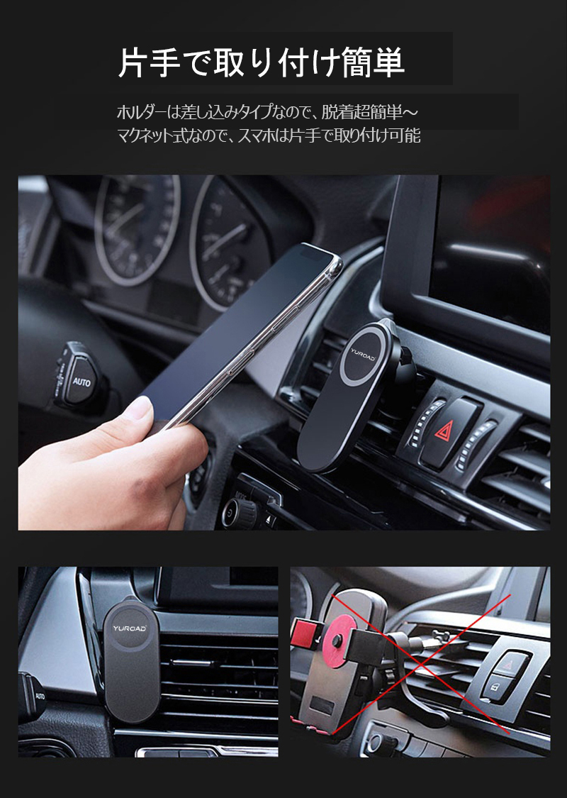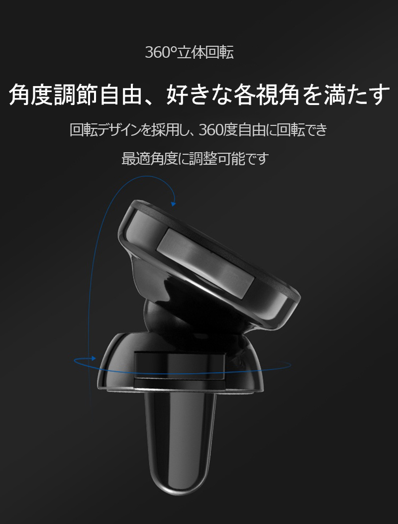 マグネット式車載スマホホルダー 小さくて巧み、車内のイメージと操作性を損なわず、美しい装着できます マクネット式、死角なし、片手で格好良く操作できる、360度回転、強力な磁力