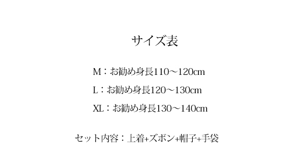 サイズ: M/お勧め身長110~120cm L/お勧め身長120~130cm XL/お勧め身長130~140cm
