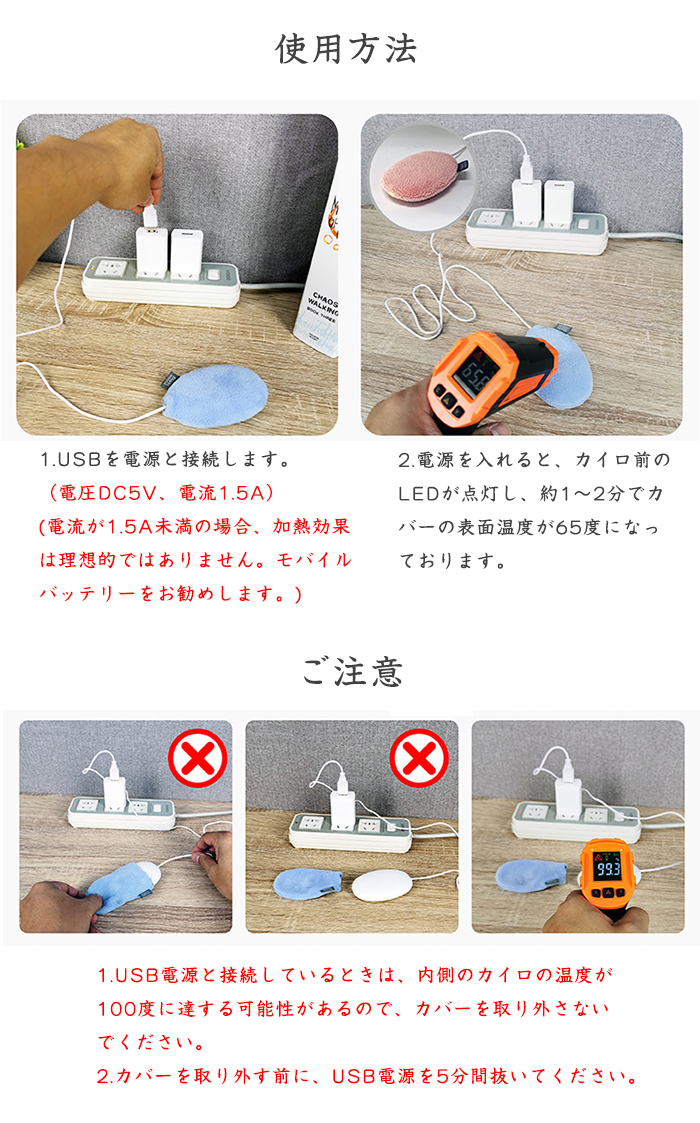 約1分で発熱USB給電式カイロ ハンド