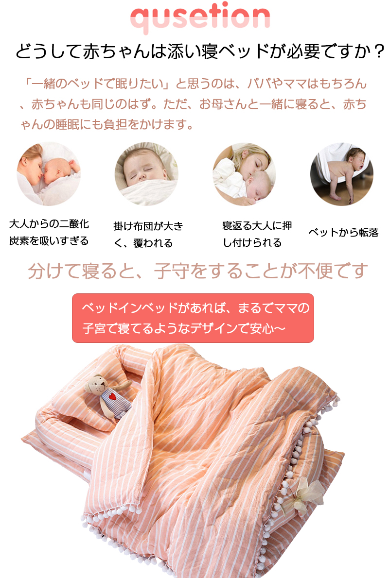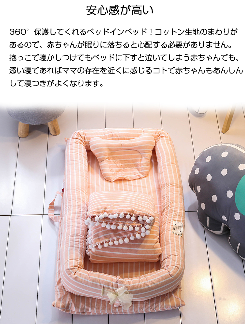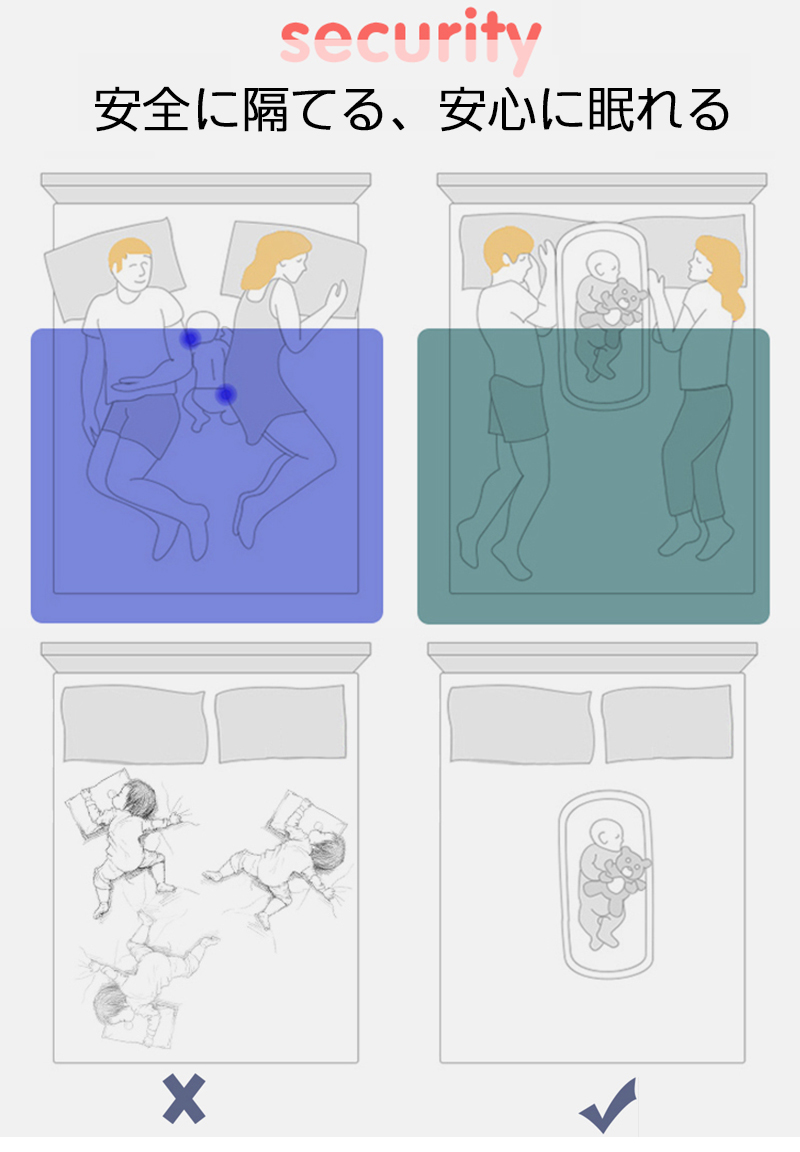 くるまれる安心感で赤ちゃんは安らぎ、睡眠を取ることができるベビー ベッドインベッド 赤ちゃんと両親の快適な 睡眠を提供します