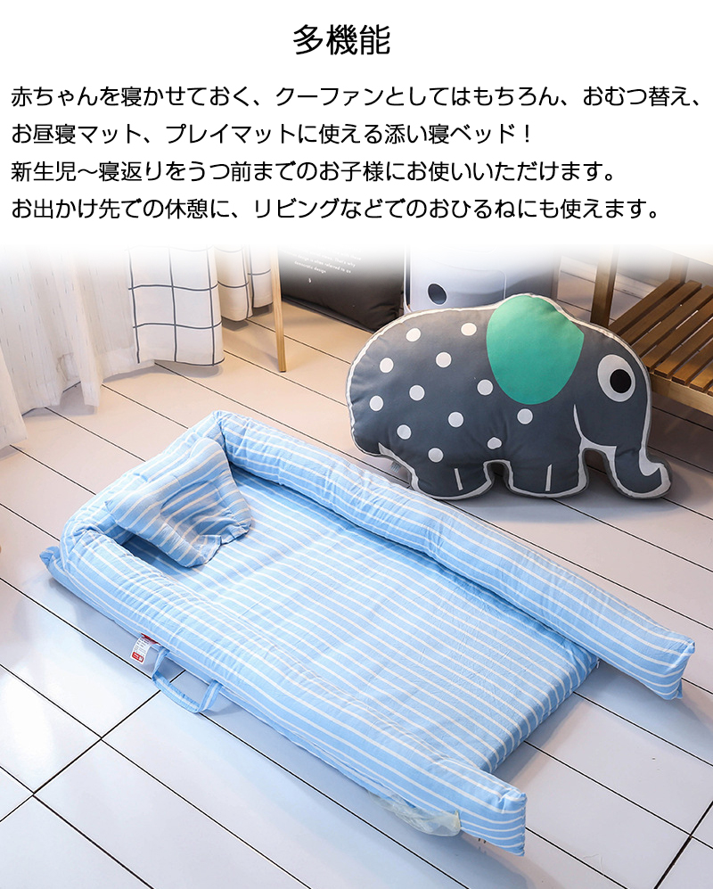 赤ちゃんを寝かせておく、クーファンとしてはもちろん、おむつ替え、お昼寝マット、プレイマットに使える添い寝ベッド!