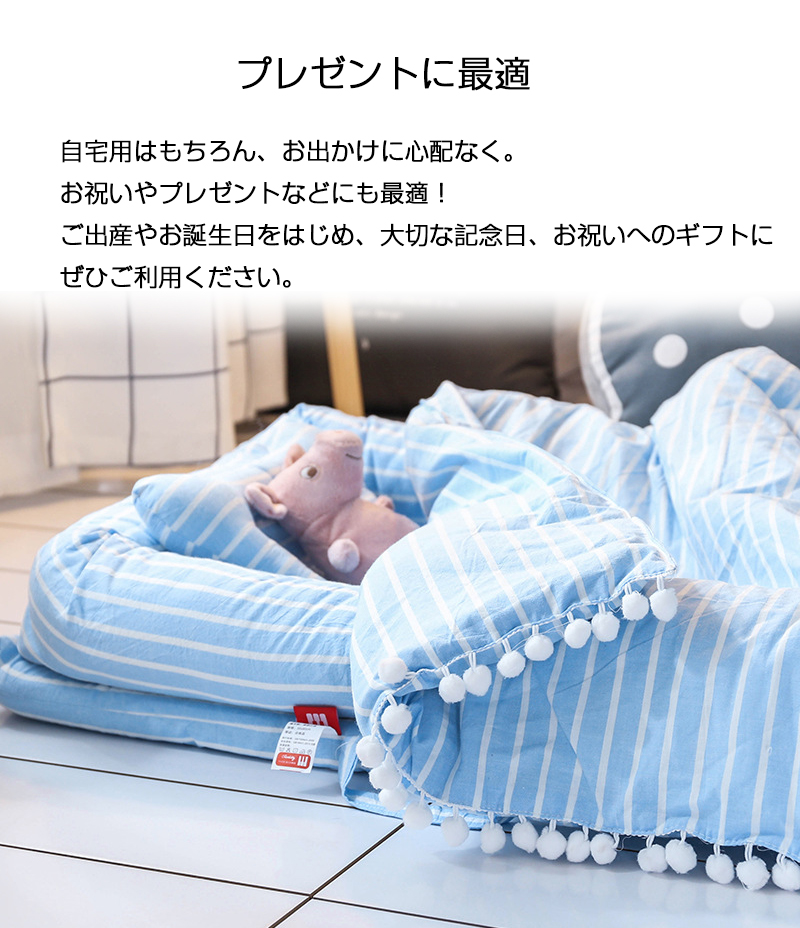 ※ブルーの方はベット、枕と布団生産時期により少し色味が違う場合がありますので、あらかじめご了承ください。< br> 【ママの子宮をまねする】
