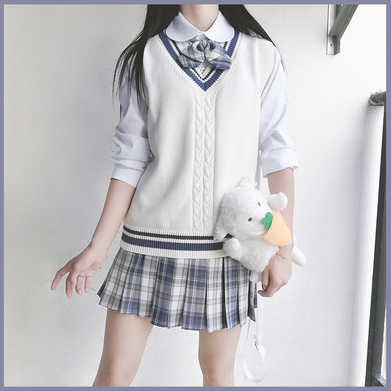 癒し系カラー×ライン入りニットベスト 1枚着るだけで可愛いコーデが完成するよ 学生制服にも、なんちゃって制服にもおすすめ サイズはS~XXLまで