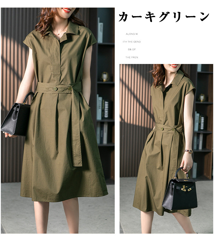ワンピース 春 きれいめ 半袖 細見え