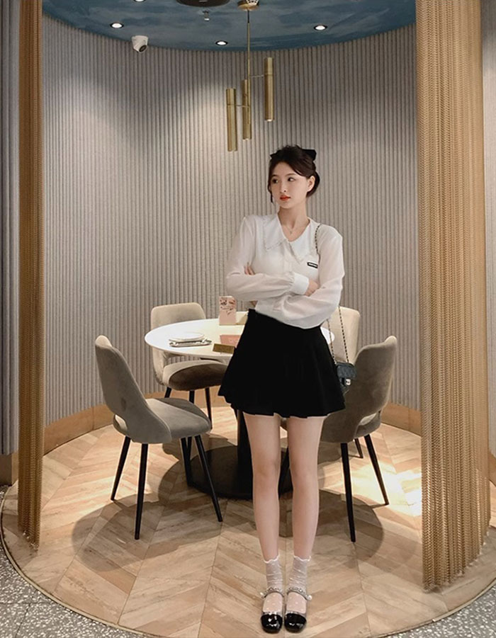 シアースリーブ ドッキングシャツ ボウタイシャツブラウス