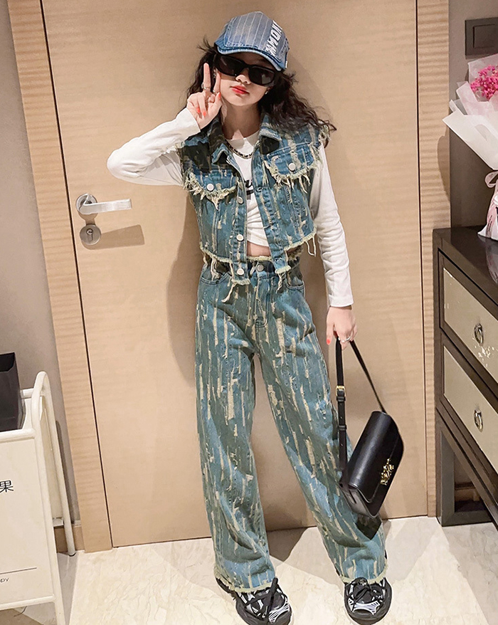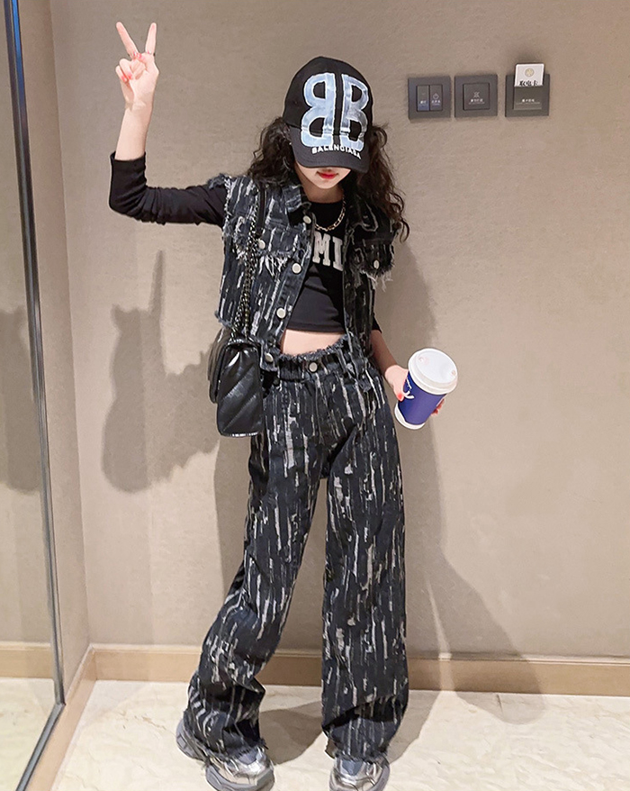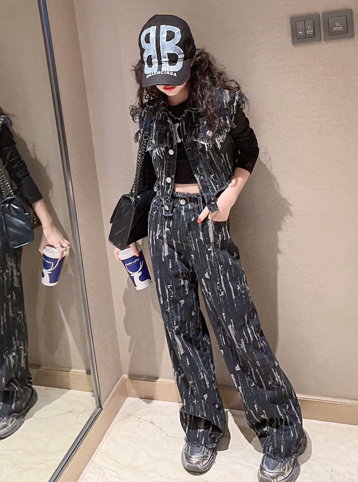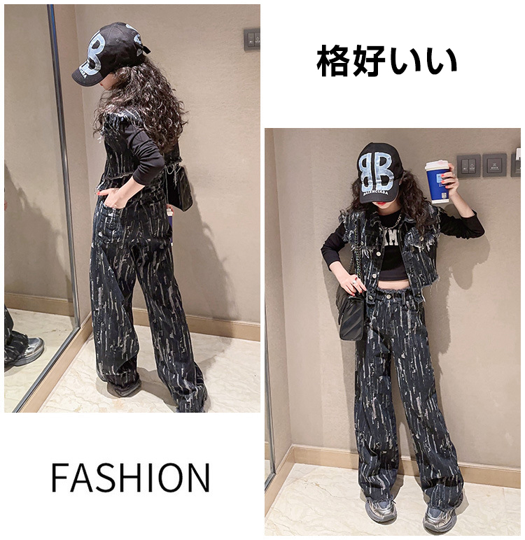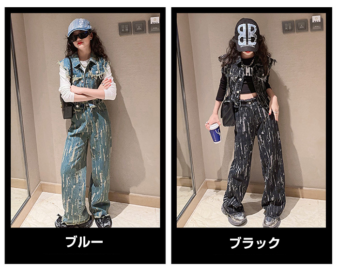 デニムパンツ ビジュー付き