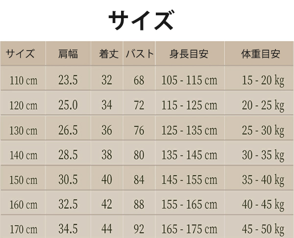 サイズ: 110cm 120cm 130cm 140cm 150cm 160cm 170cm