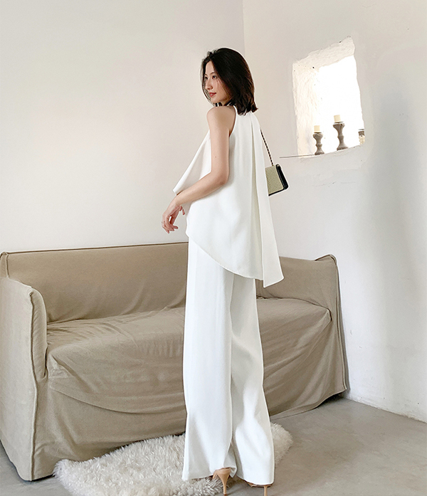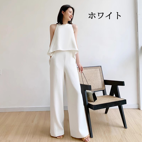 ワンピース 演奏会 二次会 結婚式 ホワイト ベージュ ブラック 黒 白 大人レディースファッション パンツドレス