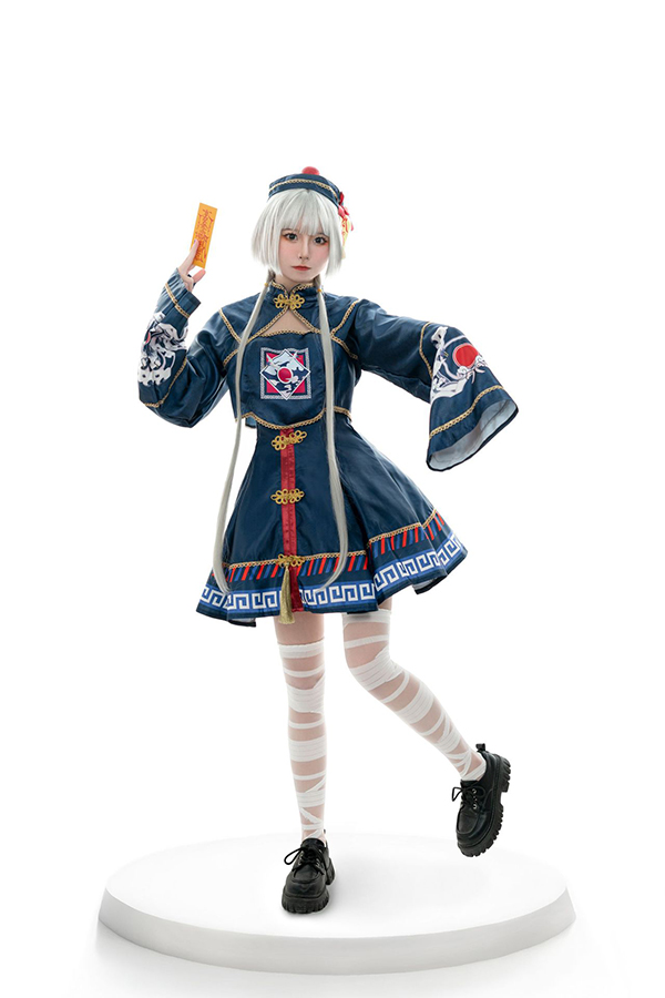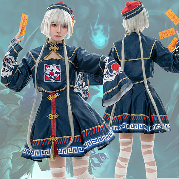 キョンシー コスプレ ゾンビ 3点セット ハロウィン お揃い 大人 仮装 レディース ワンピース 長袖 人気 お札 お化け 帽子 面白い 中国 チャイナ風 イベント用