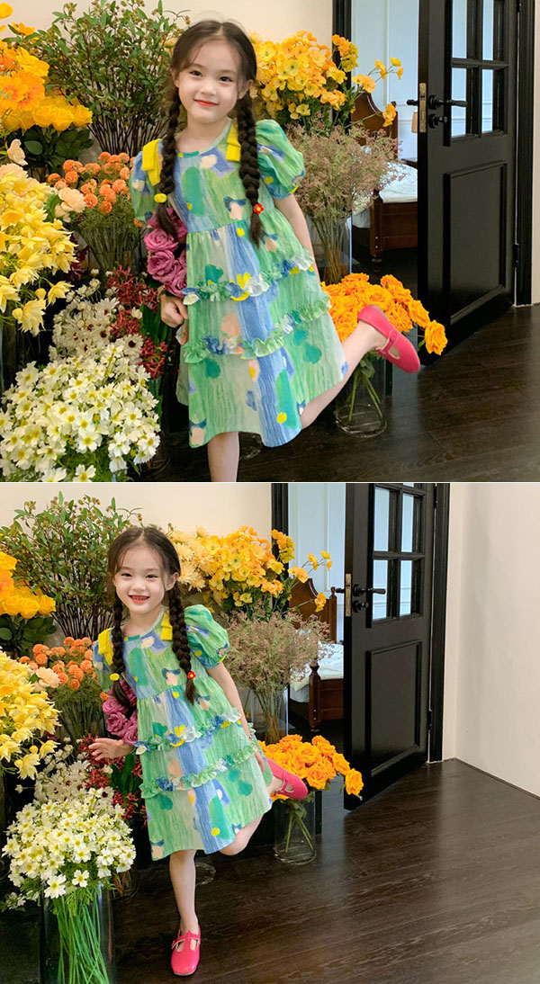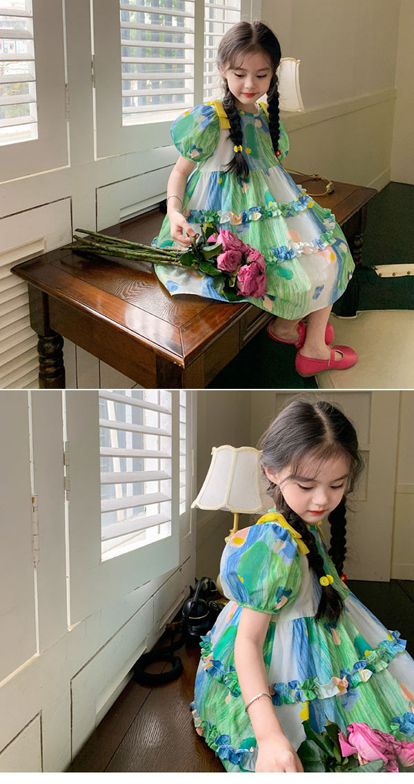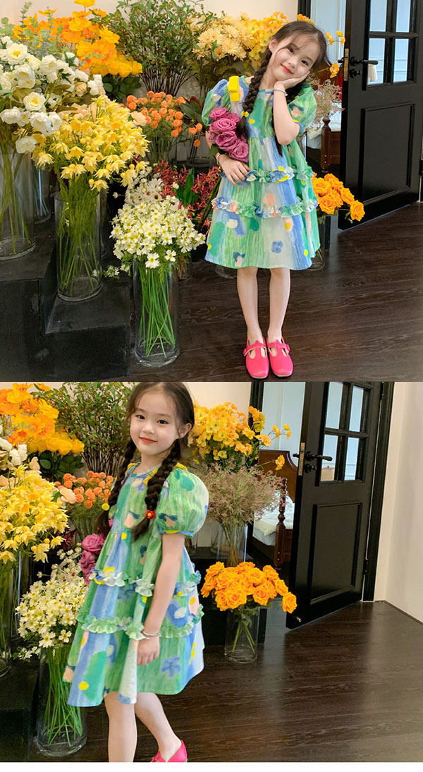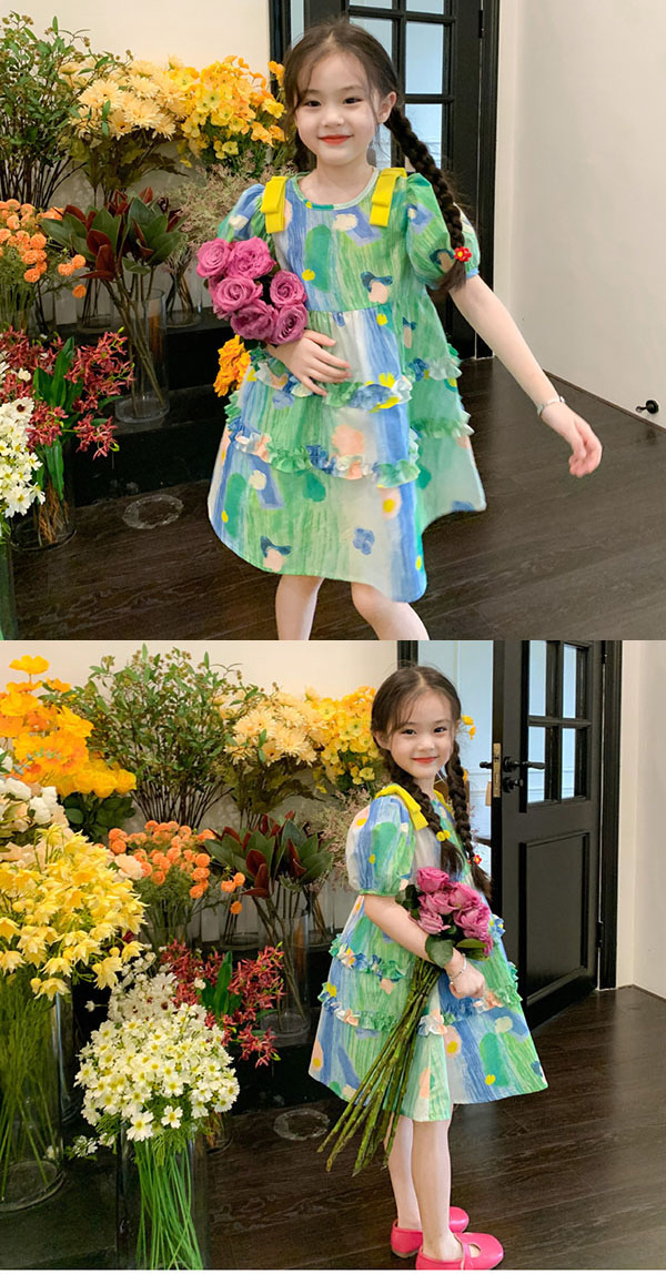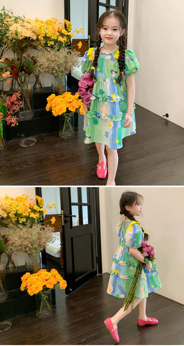 キッズ ワンピース 夏 膝丈 ワンピース 女の子 ワンピース 総柄 半袖 キッズ 子供 サマーワンピース 110 120 130 140 150 160 170cm