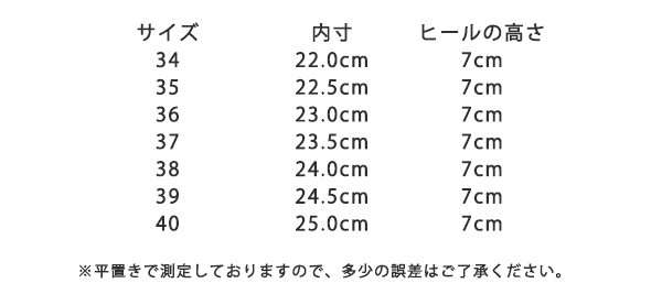 サイズ: 34【内寸22cm】 35【内寸22.5cm】 36【内寸23cm】 37【内寸23.5cm】 38【内寸24cm】 39【内寸24.5cm】 40【内寸25cm】