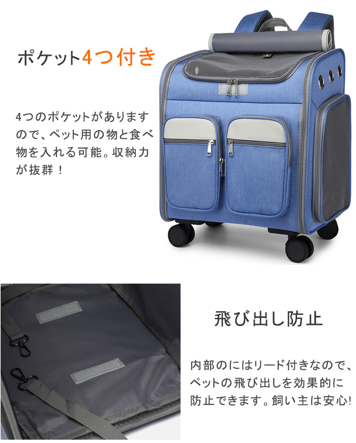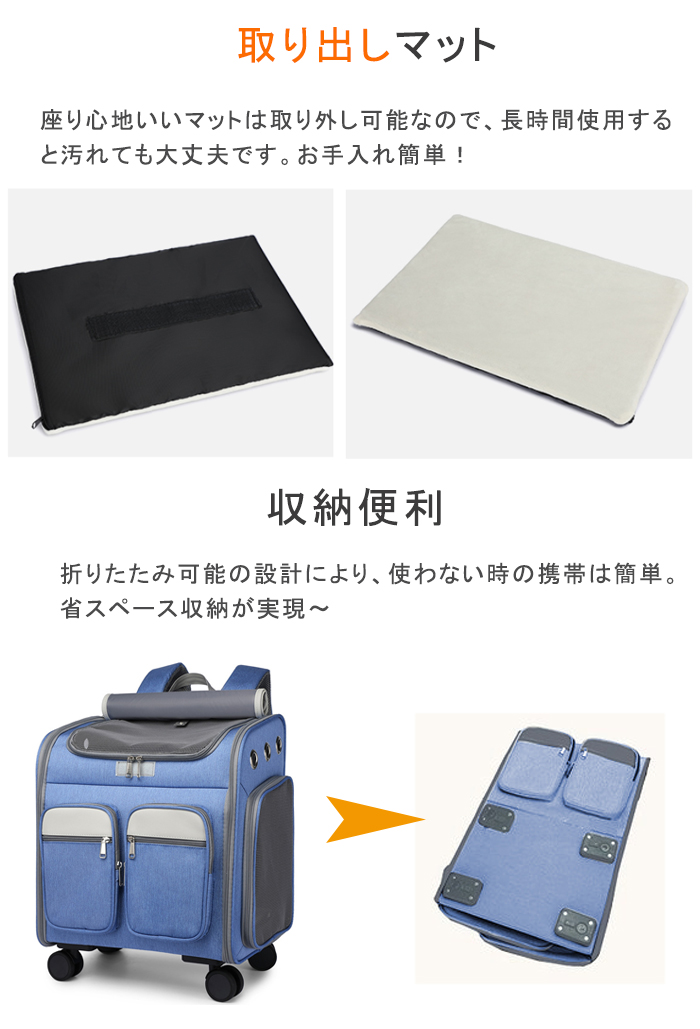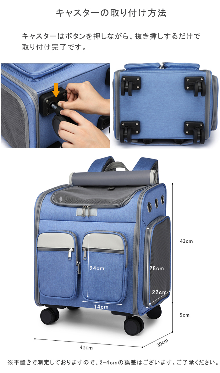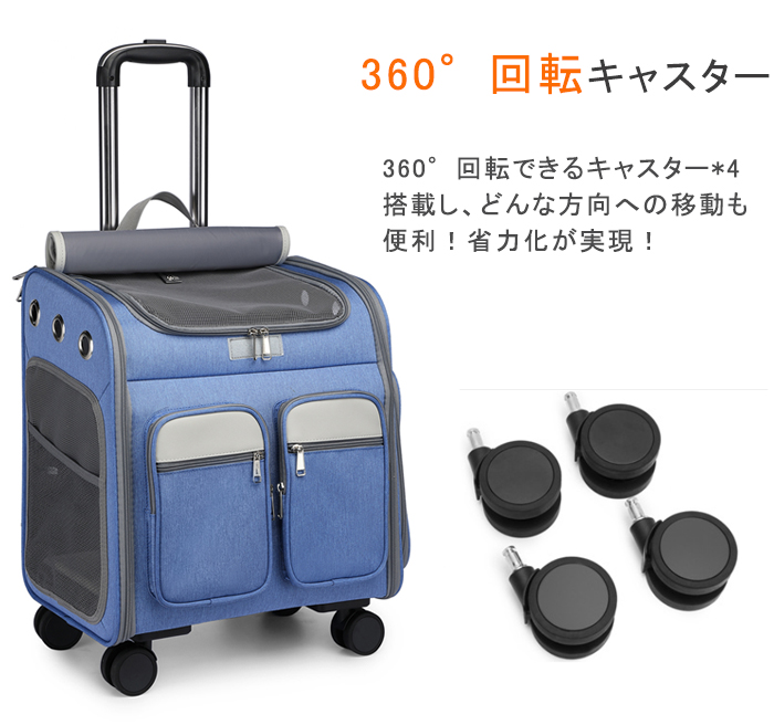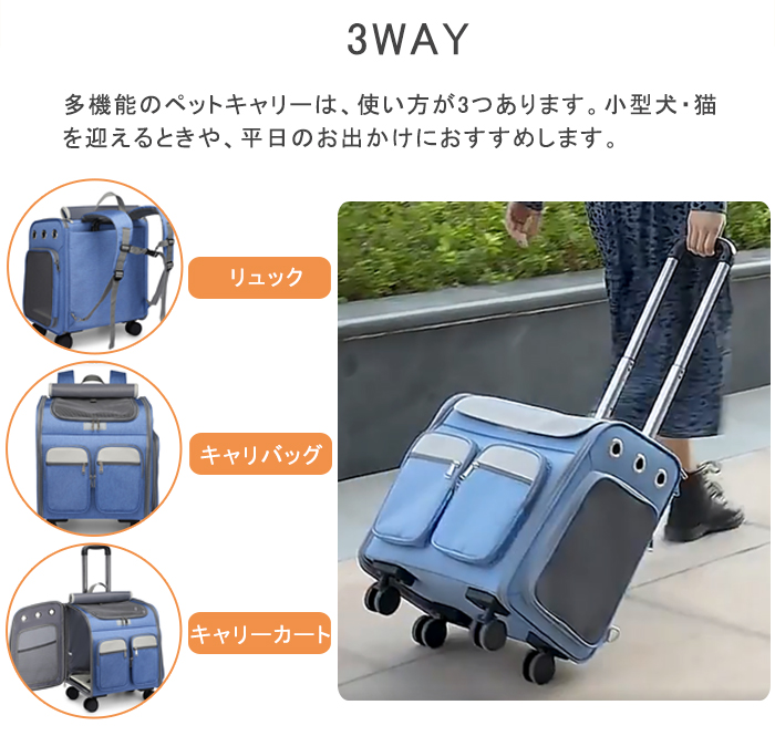 犬猫兼用のペットキャリーバッグ 3way キャスター付き 折り畳み 手提げ 両肩ショルダーペット ペットグッズ 犬用品 キャリーバッグ カート リュックキャリー