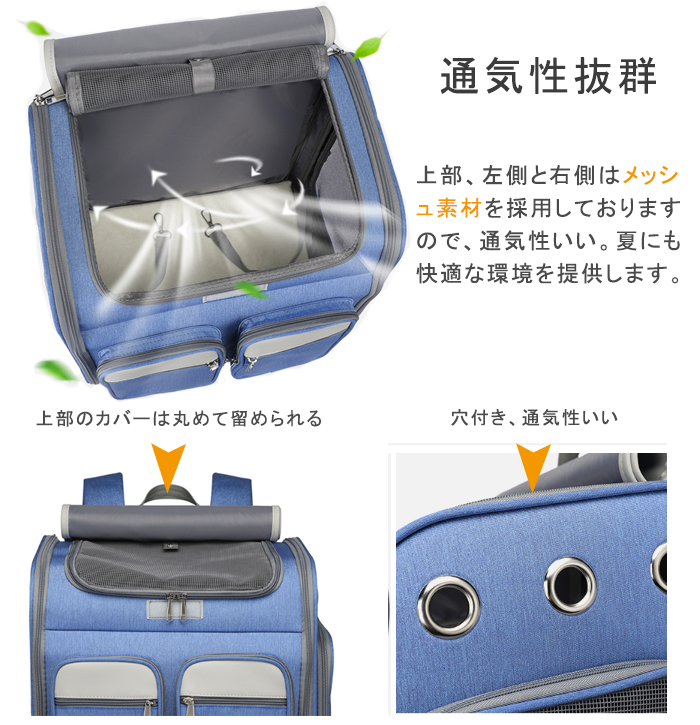 上部、左側と右側はメッシュ素材を採用しておりますので、通気性いい。夏にも快適な環境を提供し ます。