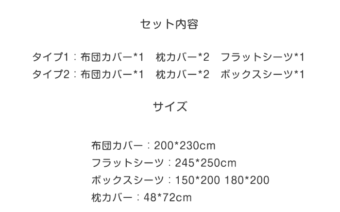 タイプ: フラットシーツ(245*250cm) ボックスシーツ(150*200cm) ボックスシーツ(180*200cm)
