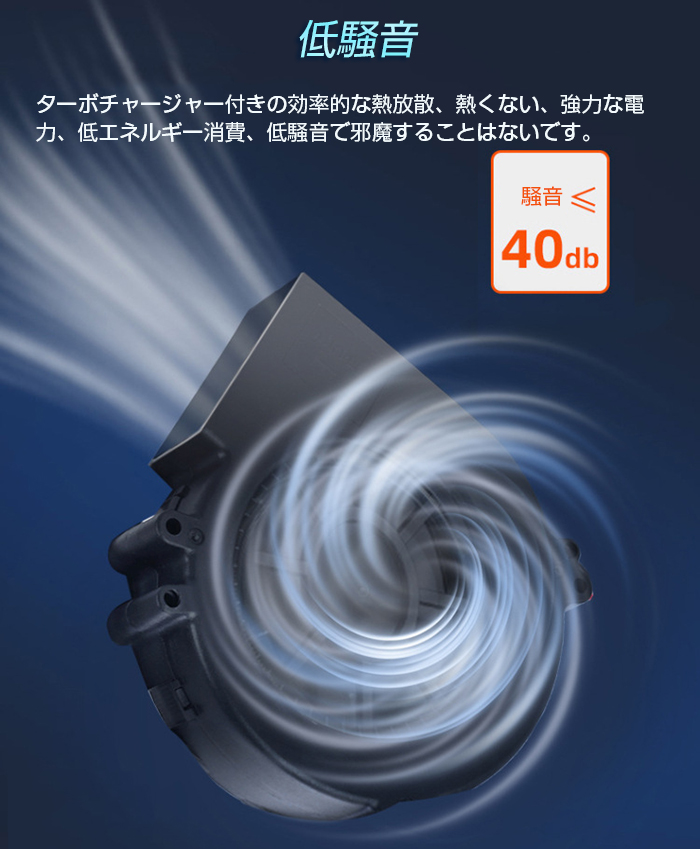 ターボチャージャー付きの効率的な熱放散、熱くない、強力な電力、低エネルギー消費、低騒音で邪魔す ることはないです。