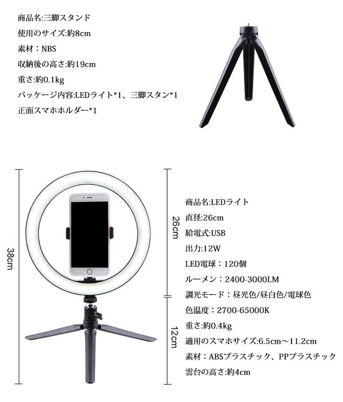 LEDリングライト 卓上 撮影照明 自