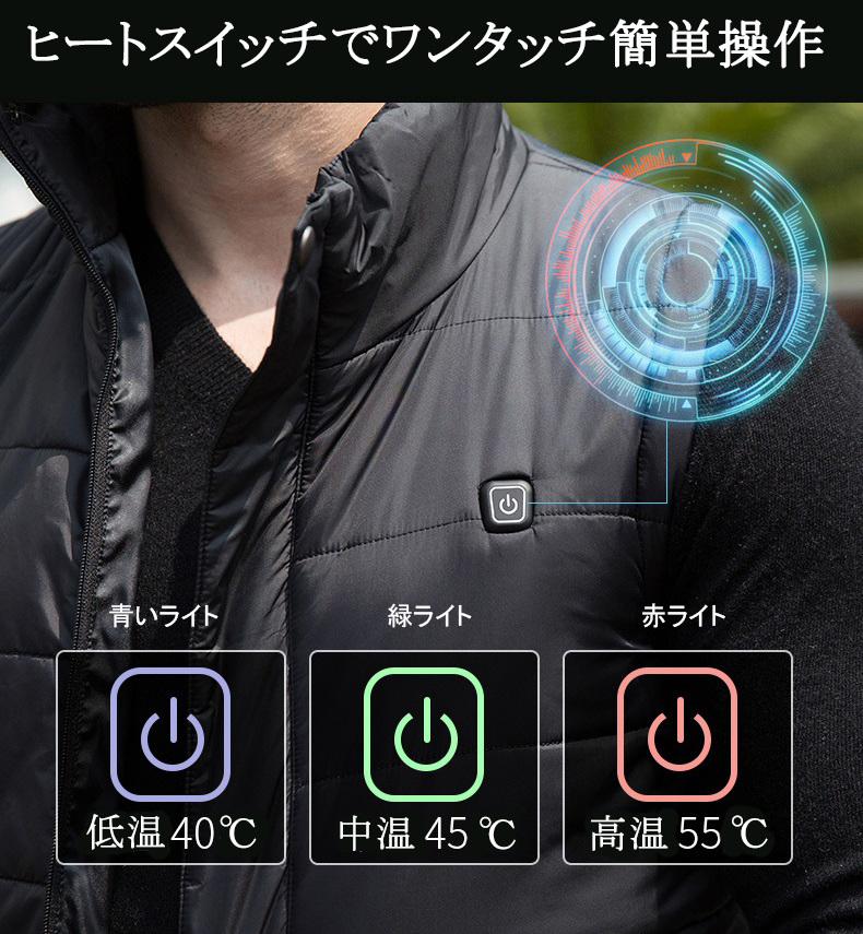 寒い冬でもぽかぽかできる ヒーター内蔵