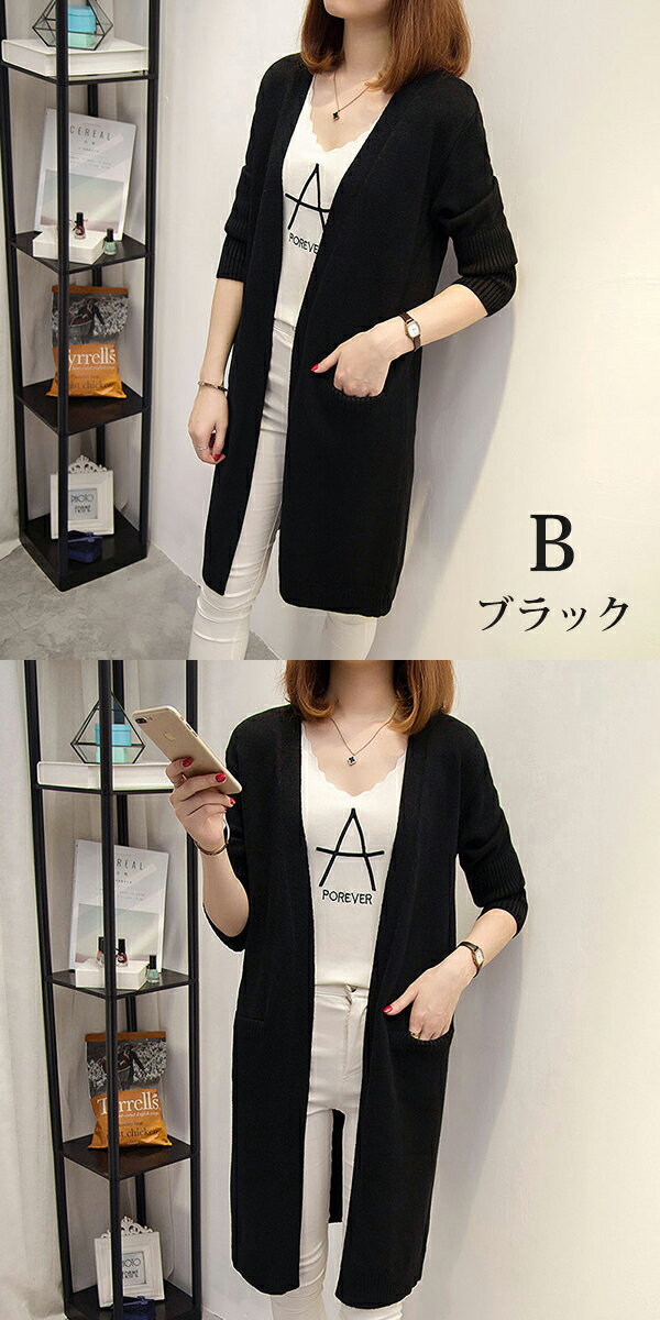 ニットカーディガン ロング丈 レディー