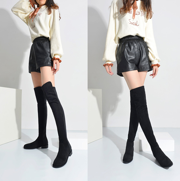 美脚を叶える 靴 ジョッキーブーツ レディース ロングブーツ ニーハイブーツ チャンキーヒール 3cm ローヒール レディース ブーツ ロング丈 シンプル 美脚