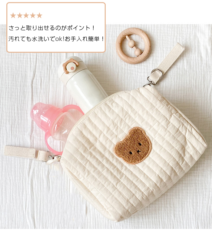 ベビーカーに引っ掛けられるおむつポーチ