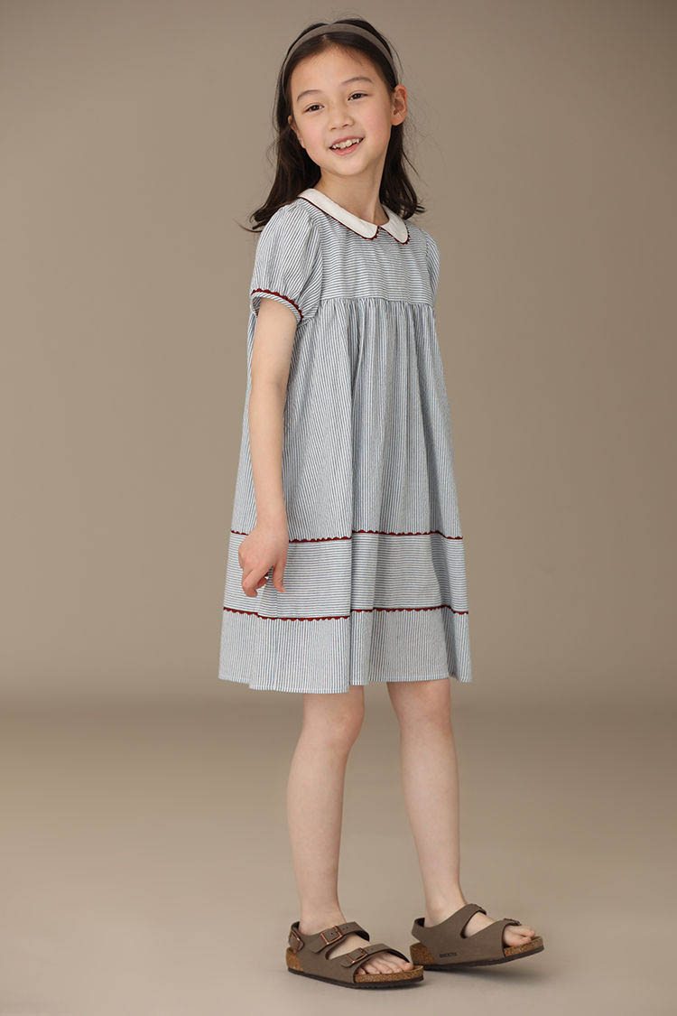 ワンピース 女の子 夏 キッズ 子供服 キッズワンピース シャツワンピース チュニック ブラウス 半袖 ストライプ 小学生 中学生 ジュニア フレアスカート お姫様 おしゃれ 可愛い カジュアル 11