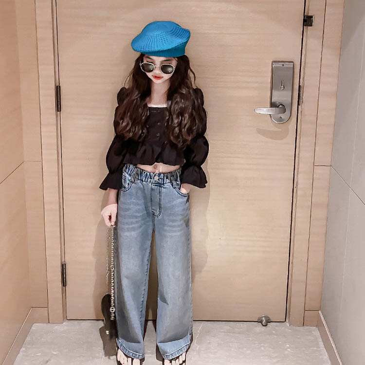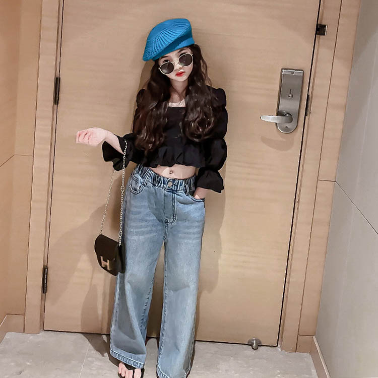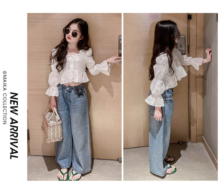 horizontal-key: ブラウス-ブラック ブラウス-ホワイト デニムパンツ