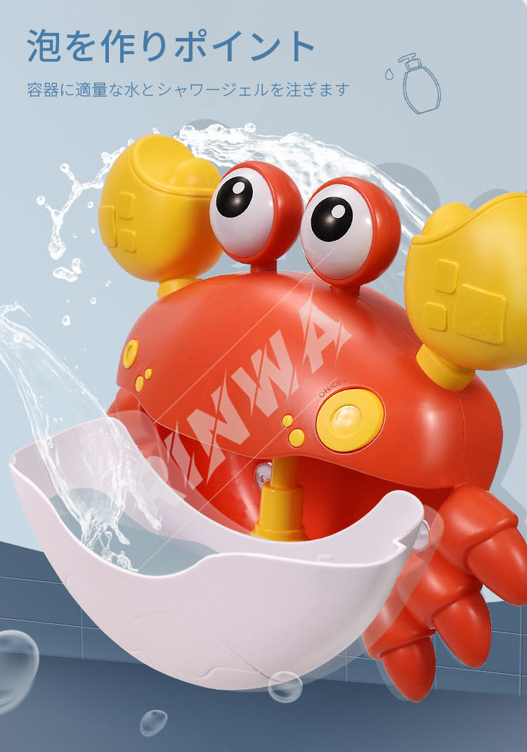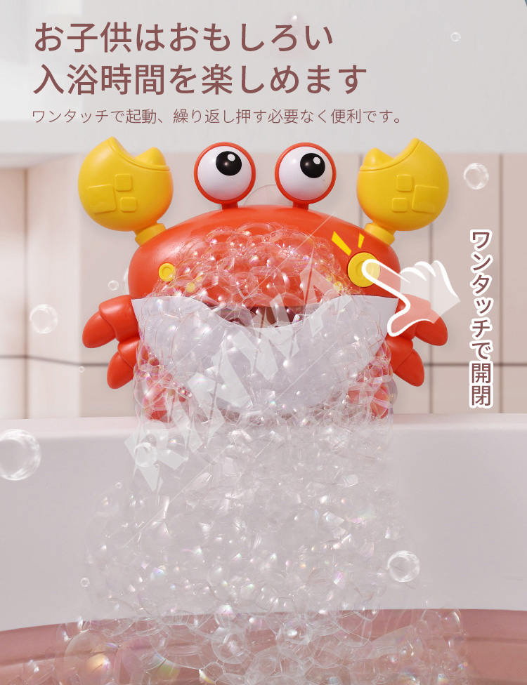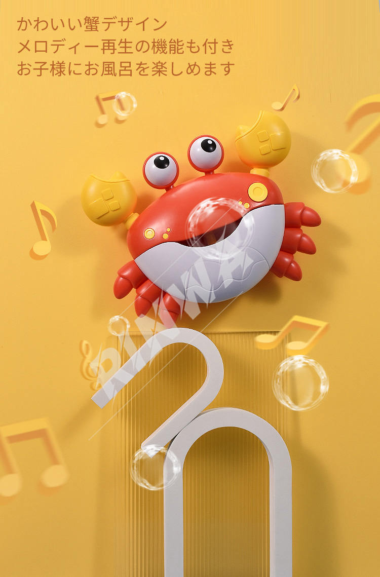 お風呂 おもちゃ 水遊び おもちゃ 電動式 音楽付き 蟹 カニ シャボン玉 バブルマシーン しゃぼんだま液 女の子 男の子 赤ちゃんおもちゃ 知育玩具 かわいい形 安全素材 強力な吸盤付き 誕生日 プ
