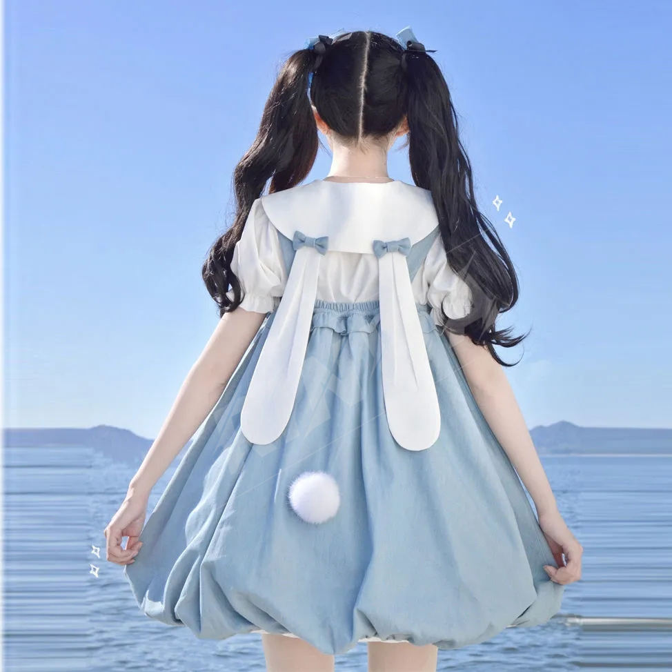ハロウィン コスチューム バニーガール ウサギ うさみみ うさ耳 こども ドレス 2点セット シャツ ストラップスカート 可愛い