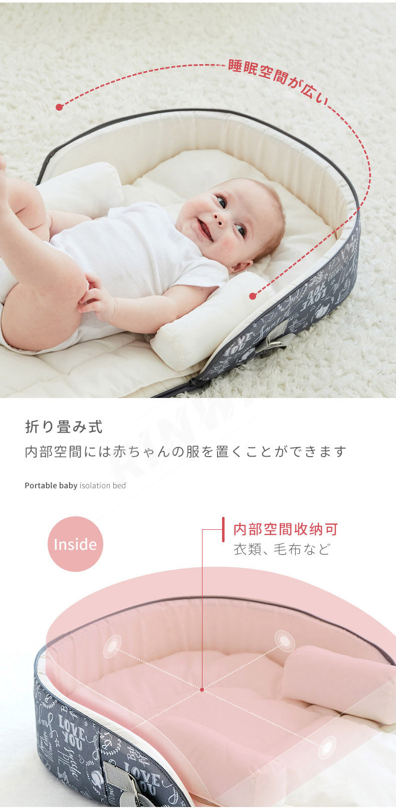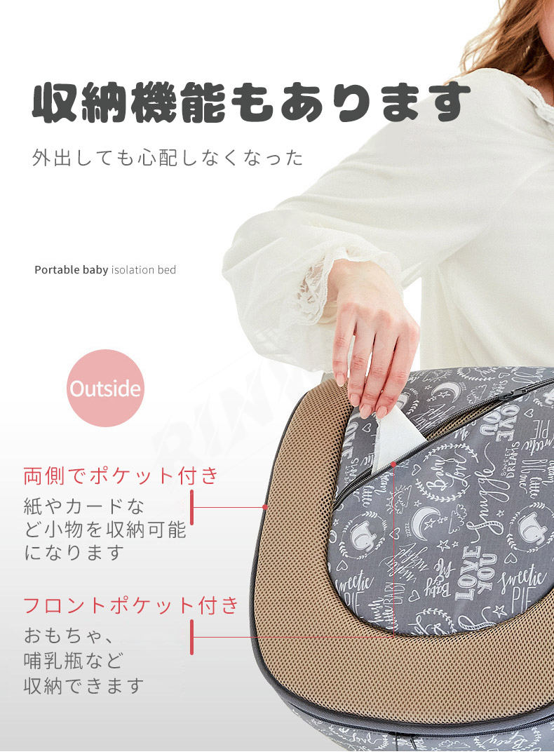 ベッドインベッド ベビーベッド 折りたたみ式 寝返り防止 新生児 赤ちゃん 添い寝 新生児ベッド 女の子 男の子 持ち運びやすい 転落防止 洗濯可能 通気性 出産祝い プレゼント