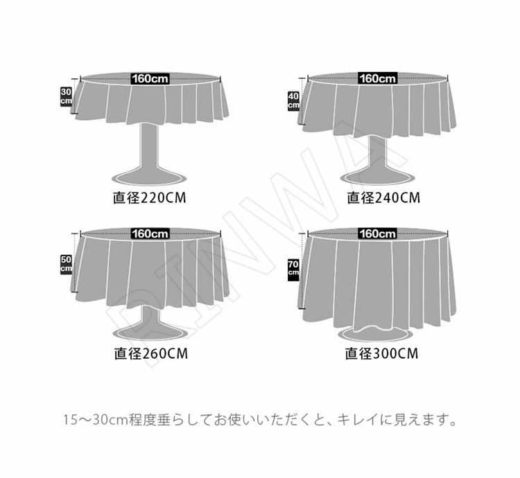 カラー: 直径160cm 直径180cm 直径200cm 直径220cm 直径240cm