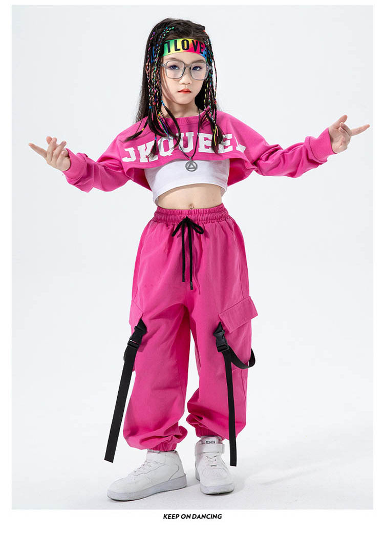 ダンス衣装 女の子 セットアップ 子供服 キッズ ヒップホップ衣装 Tシャツ ベスト ロングパンツ ユニセックス ワイド ヒップホップ衣装 ダンスパンツ ステージ衣装 ジャズダンス衣装 スポーツ おし