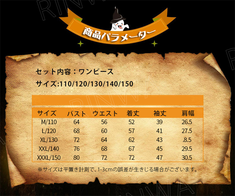 サイズ: M(110cm) L(120cm) XL(130cm) XXL(140cm) XXXL(150cm)